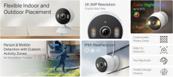 С 2K яснота през деня и цветно нощно виждане камерата помага да разпознавате детайли, които често се губят при стандартни Full HD решения. Вградените двойни прожектори осигуряват по-ярка картина в тъмното, а IP65 защитата позволява гъвкав монтаж както на закрито, така и на открито.