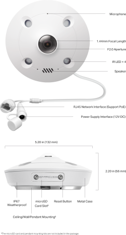 | Тип камера: | Мрежова (IP) fisheye камера |