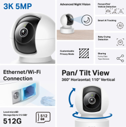Wi-Fi Pan-Tilt камера за наблюдение с AI, TP-Link Tapo C232