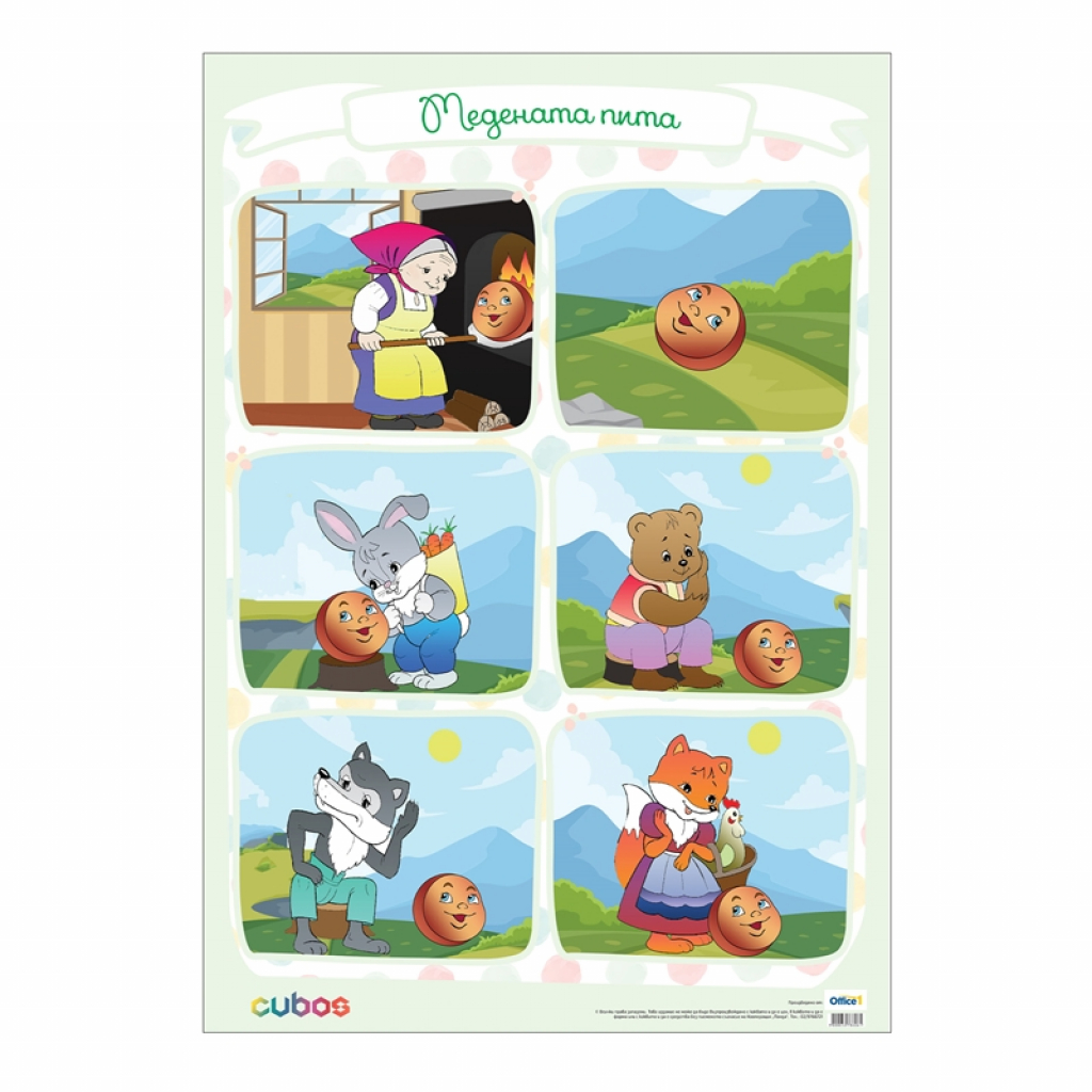 - Двойноламинирано табло, изобразяващо приказката "Медената питка". Подходящо е за използване в детска градина.