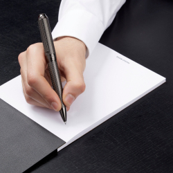 Елегантният корпус от матов метал с гравирана текстура тип „рибена кост“ придава отличителна визия и усещане за премиум качество. Балансираната конструкция е създадена за комфорт и увереност при писане – подходяща както за ежедневна употреба, така и за важни срещи и подписване на документи.