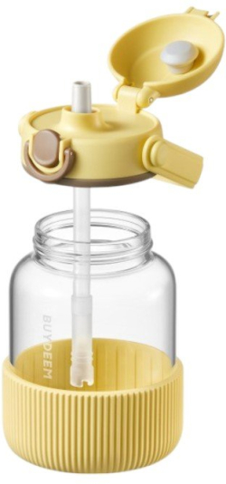 BUYDEEM Стъклена Бутилка е стилна и практична стъклена бутилка за вода с удобна pop-up сламка, създадена за ежедневна употреба у дома, в офиса или в движение.