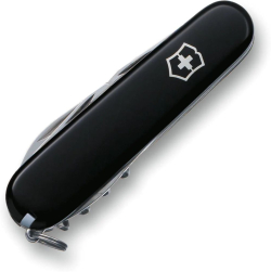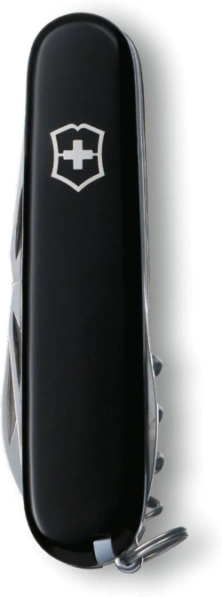 - Функции: Голямо острие; малко острие; комбиниран инструмент 1: отварачка за бутилки, плоска отвертка, зачистване/огъване на кабели; комбиниран инструмент 2: отварачка за консерви, малка отвертка; тирбушон; шило с конусовидно свредло/разширител, клечка за зъби; пинсети; халка за ключодържател или верижка.
