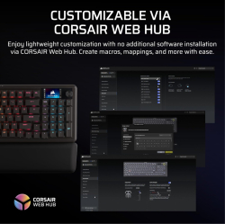 RGB подсветката дава възможност за визуална персонализация, а магнитната поставка за китки повишава комфорта при дълги сесии. Вграден LCD дисплей допринася за по-удобен контрол и бърз преглед на информация, което прави Corsair VANGUARD 96-MLX Plasma-DUAL отличен избор за търсещите премиум механична клавиатура за игри.