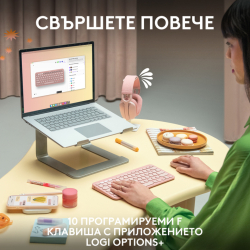 С батерия, която издържа до 24 месеца, Logitech K380S гарантира дългосрочна работа без нужда от честа смяна на батериите. Клавиатурата разполага с мултимедийни функции, които улесняват контрола на мултимедийни приложения, и е снабдена със светодиоден индикатор за лесно наблюдение на състоянието на връзката. В допълнение, тя е много компактна и елегантна, като идеално пасва в различни работни среди и пространства. Logitech K380S идва в стилен тонален бял цвят, като предлага висококачествено изживяване за всеки потребител, а с 2 години гаранция можете да бъдете спокойни за качеството на продукта.