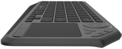 Natec Turbot 2 Keyboard, US, Безжична, BT, 2.4GHz, X-Scissors with Touchpad for Smart TV, Черен е практична безжична клавиатура с вграден тъчпад, създадена за удобно управление на компютър и Smart TV от дивана или бюрото.