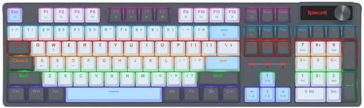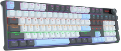 Механична геймърска Redragon Caesura K718GB-R, Rainbow осветление, червени суичове - черна с тъмносиньо
