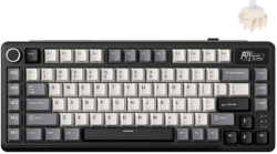 Геймърската клавиатура ROYAL KLUDGE RK L75 Knight Black е 75% компактна механична клавиатура с Cream суичове, подходяща за безжична (Bluetooth/RF 2.4GHz) и кабелна употреба. Поддържа RGB подсветка, PBT капачки и вградена памет за профили. Батерията е 8000 mAh, презареждаема, осигурявайки продължителна работа без кабел.