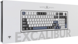 WHITE SHARK EXCALIBUR-W е геймърска механична клавиатура с безжична връзка, RGB подсветка и елегантен бял дизайн, създадена за динамична игра и комфорт при работа.