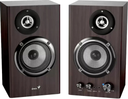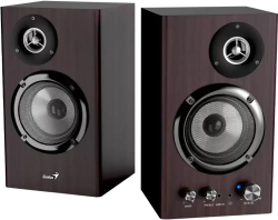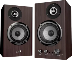 Genius тонколони Speakers 2.0 - SP-HF1812BT - 50W RMS, Bluetooth 5.3, Dark Brown са стилно и мощно решение за качествен звук у дома или в офиса, с удобна безжична връзка и дървен корпус.
