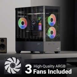 AeroCool кутия Case mATX - P300D Digi-G-BK-v1 - Digital Display, USB-C, 3 x 120 mm A-RGB
