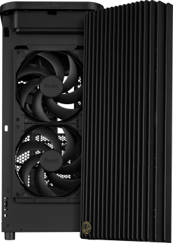 Корпусът предлага гъвкави опции за охлаждане с поддръжка на множество вентилатори и радиатор, както и достатъчно място за дълги видеокарти и високи CPU охладители. Благодарение на модерните предни портове, включително USB-C, ASUS ProArt PA401 е удобна и за ежедневна работа в студио или офис.