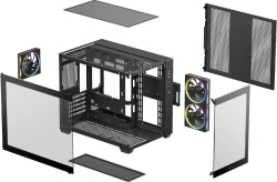 | ДОПЪЛНИТЕЛНИ | Pillarless full-view side panel Dual-chamber layout Pre-installed with two reverse-blade FL series fans on the side and one standard at the rear 46mm cable management ATX PS2 (maximum length: 200mm)/SFX/SFX-L Support rear connector motherboards (BTF) |