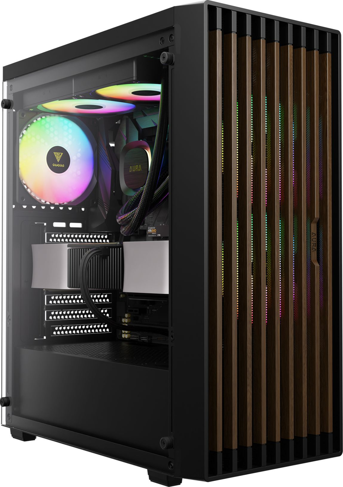 Gamdias ATX кутия AURA GC4 ELITE с addressable RGB и дървен панел