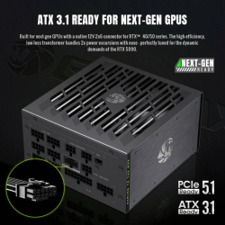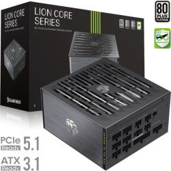 Gamemax захранване PSU ATX 3.1 1000W Platinum, Full Modular - LION CORE 1000P е високоефективно ATX 3.1 захранване, създадено за мощни геймърски и професионални конфигурации с модерни видеокарти и високи изисквания към стабилността.