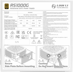 Lian Li RS, 1000W, 80+ Gold, PCIe 5.1, ATX 3.1, бял е високоефективно и модерно захранване за компютър, създадено за стабилна работа на мощни конфигурации и чист кабелен мениджмънт.