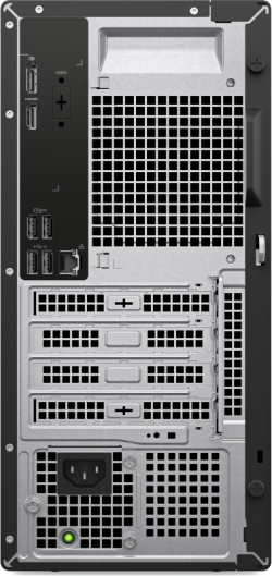 Компютърът предлага разнообразни интерфейси за свързване, включително USB 3.2 Gen 1 и Type-C портове, HDMI и DisplayPort изходи, RJ-45 Ethernet, Wi-Fi 6 и Bluetooth. Слотовете за разширение включват PCIe x16 и PCIe x1 за допълнителни карти, а M.2 слотовете позволяват добавяне на SSD или Wi-Fi/Bluetooth карта. В комплекта са включени клавиатура Dell KB216 и оптична мишка Dell MS116. Кутията е тип Tower с черен цвят и размери 15.4 x 29.3 x 32.4 cm, оборудвана с слот за сигурност Kensington, а гаранцията е 36 месеца.