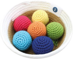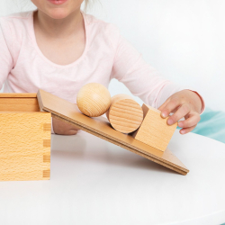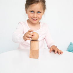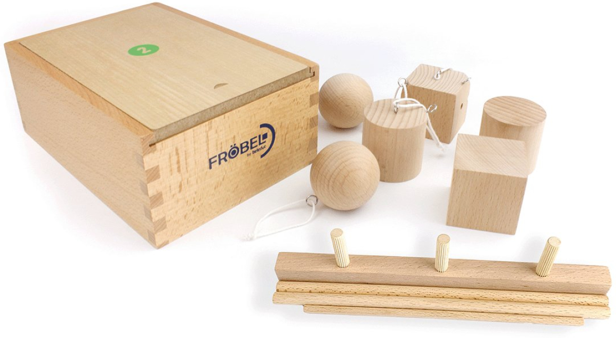 Според Фрьобел топката е първата играчка на детето – затова шестте вълнени топки привличат вниманието с мекота и динамика, насърчавайки сензорна игра и наблюдение. В следващите етапи дървените форми (топка, кубче и цилиндър) подпомагат разбирането на основни геометрични тела и движението им, като стимулират фината моторика и концентрацията.