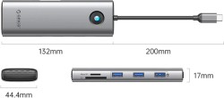 Orico докинг станция Docking Station Type-C - PW11-9P-GY-EP - HDMI x 1, VGA x 1, USB3.0 x 3, USB-C PD100W x 1, LAN x 1