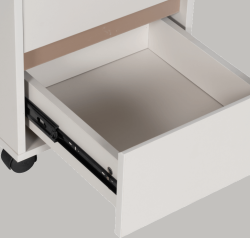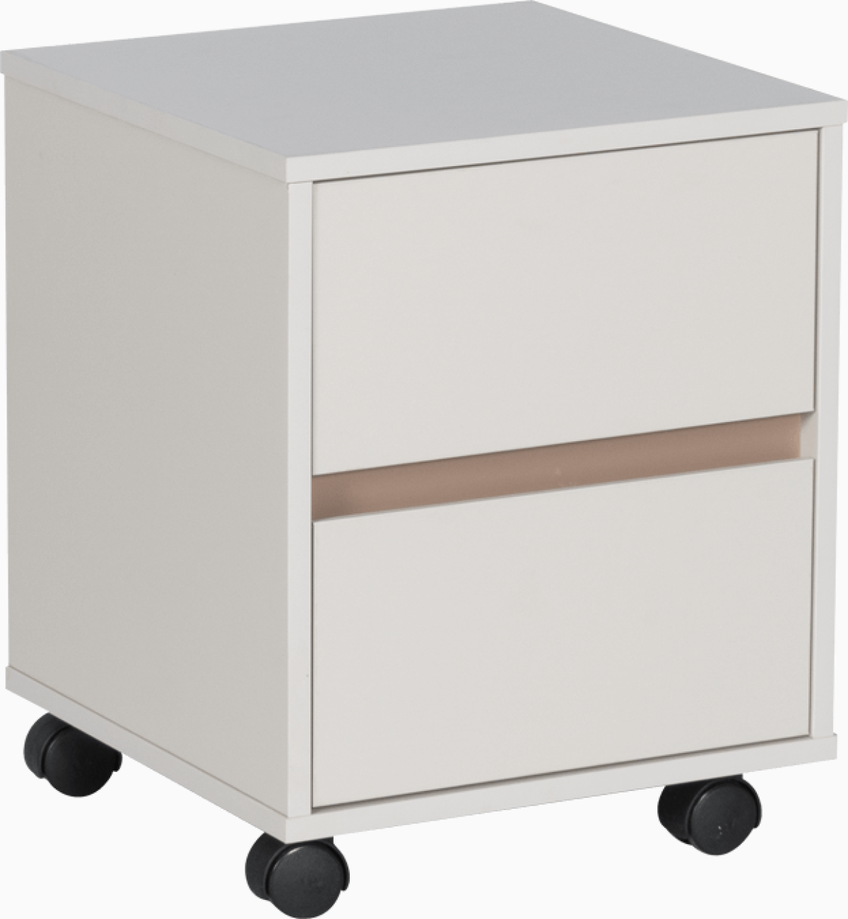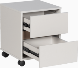 Благодарение на колелцата, Офис контейнер с две чекмеджета ANGELES - капучино се премества лесно и удобно според нуждите ви — идеален като мобилен контейнер до бюро, под работен плот или като допълнително място за съхранение. Дизайнът в цвят капучино се вписва естествено в различни интериорни стилове и офис обзавеждане.