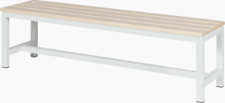 Пейка за съблекалня Carmen 150-1 - 150x40.5x42.5 см - бяла е практично решение за съблекални, спортни зали и общи помещения, където са нужни удобство и надеждност. Комбинацията от дърво и метал осигурява стабилност и дълготрайна употреба.
