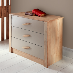 С трите си чекмеджета скринът осигурява удобна организация на дрехи, бельо и аксесоари, като помага да поддържате пространството подредено и лесно достъпно. Изработката от ПДЧ с плоскости 18 мм допринася за стабилност и надеждност при ежедневна употреба.