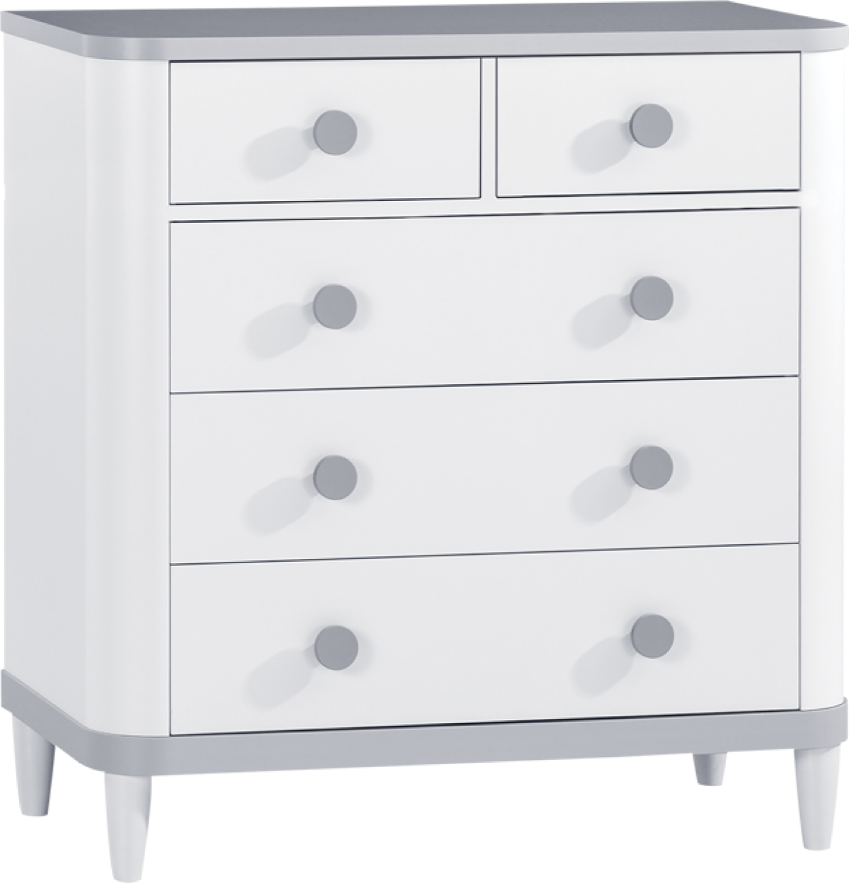 С пет просторни чекмеджета, този скрин за дрехи улеснява организирането по категории – тениски, бельо, чорапи или сезонни дрехи. Вградените механизми за плавно затваряне допринасят за по-тихо и комфортно използване, като щадят конструкцията при ежедневно отваряне и затваряне.