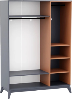 Изработен от ПДЧ с дебелина 18 мм, моделът предлага стабилност и надеждност за ежедневна употреба. Механизмите за плавно затваряне допринасят за по-тихо и приятно затваряне на вратите и по-добро усещане при използване на този трикрилен гардероб за дома.