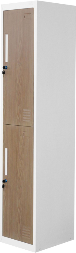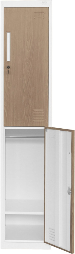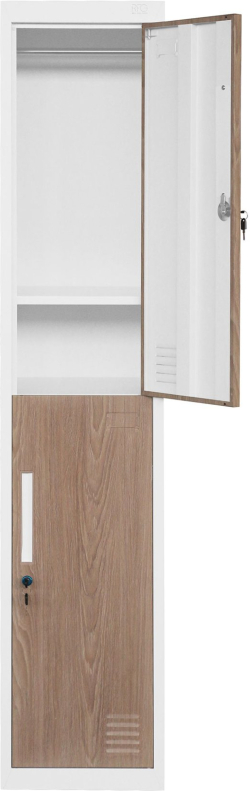 Гардероб RFG, единичен, метален, с две врати, 380 х 450 х 1850 mm, кехлибарен дъб и бяло