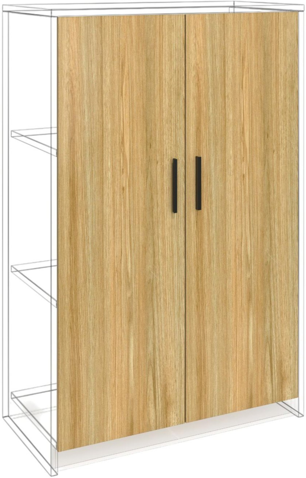 Комплектът включва 2 броя врати, което улеснява комбинирането при шкафове и секции и осигурява визуална симетрия. Изработката от ПДЧ 18 mm клас E1 с меламиново покритие допринася за лесна поддръжка и устойчивост при ежедневна употреба.