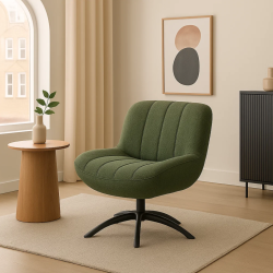 С компактните си размери и добре балансирана височина на седалката, Кресло CARLY - зелено се вписва лесно в различни пространства – от дневна и спалня до приемна или кабинет. Това въртящ се фотьойл е практичен избор за хора, които ценят комфорта и изчистения дизайн.