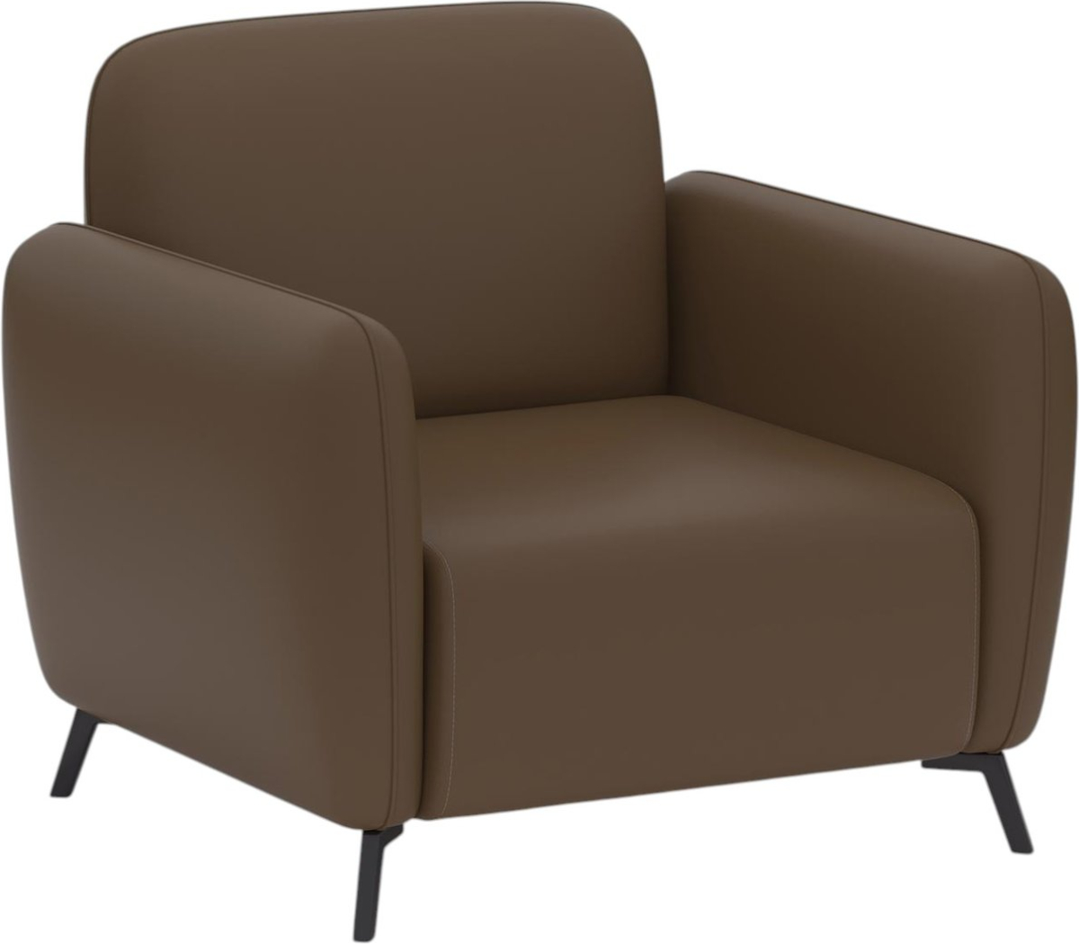 Моделът е тапициран с екокожа, която придава елегантен вид и се вписва лесно в различни интериорни концепции. Кафявият фотьойл допринася за топла атмосфера и е практичен избор за зони за изчакване, рецепции и кътове за релакс.