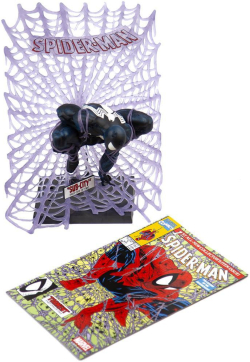 Фигурката McFarlane Spider-Man (Black Suit) е част от Marvel Collection 1:6th WV6 и представлява лимитирана Chase Edition, вдъхновена от комикса Spider-Man #1. Тя е с мащаб 1:6, височина около 30 см и е изработена от PVC и ABS пластмаса. Статичната сценична фигура включва интегрирана основа с фон от комикса, арт карта и репринт на комикса.