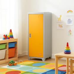 Метален шкаф Carmen CR-1605-1 JZ - сив / оранжев е практично решение за организирано съхранение на дрехи и лични вещи в офис, съблекалня или работно помещение. Конструкцията от праховобоядисан метал осигурява надеждност и лесна поддръжка.
