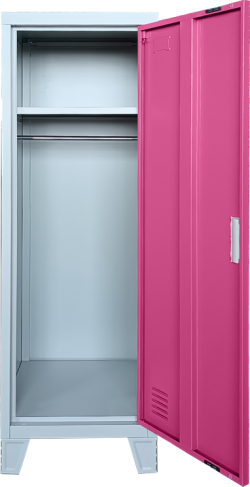 Метален шкаф Carmen CR-1605-1 JZ - сив / розов е практично решение за подредено и сигурно съхранение на дрехи и лични вещи в офис, съблекалня, училище или работно помещение. Здравата метална конструкция и заключването го правят надежден избор за ежедневна употреба.