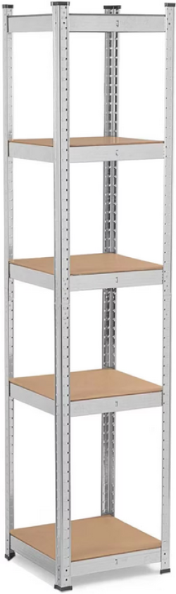 Метален стелаж Carmen CR-1022, 180x40x40 см, до 70 кг на рафт - цинк е практично решение за подредба и съхранение в гараж, склад, работилница или килер. Конструкцията от галванизиран метал и рафтовете от МДФ осигуряват стабилност и удобство при ежедневна употреба.