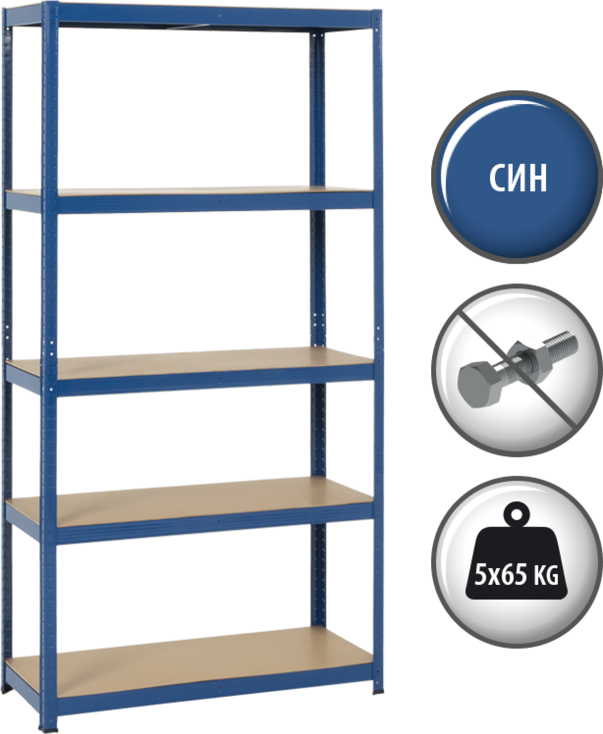Метален стелаж Carmen CR-1027, 192x100x40 см, до 65 кг на рафт - син
