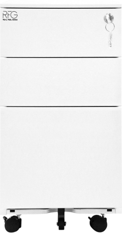 Контейнер RFG, метален, с три чекмеджета и ключ, 300 х 600 х 560 mm, бял е практично решение за подреден и сигурен офис, където документите и принадлежностите са винаги на една ръка разстояние.