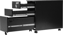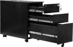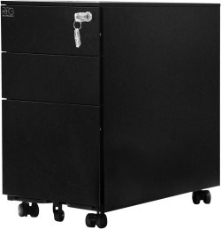 Здравата метална конструкция от стомана с дебелина 0.6 mm и прахово боядисано гладко покритие осигуряват устойчивост при интензивна употреба. Трите чекмеджета са проектирани за удобен достъп и надеждно съхранение, като едното е предназначено за висящи папки A4.
