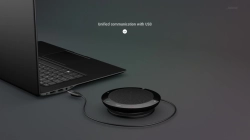 - Jabra Speak 410 представлява ненасочен микрофон, който позволява 4 или повече човека да участват в разговора.
