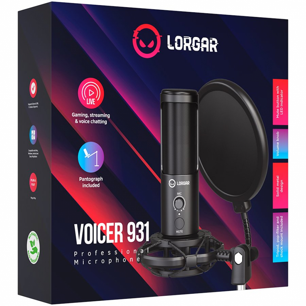 LORGAR Gaming Microphones, Black, USB condenser microphone