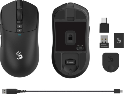 Геймърска безжична оптична мишка A4tech Bloody R72 Pro - Black е висок клас модел от ново поколение, създаден за максимална точност и стабилност в динамични игри. Комбинира двурежимно свързване, премиум сензор PixArt PAW3395 и 1ms реакция за конкурентно предимство.