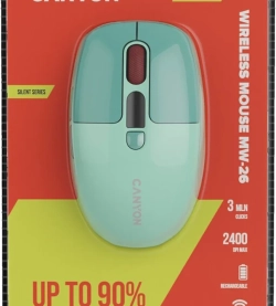 CANYON MW-26 LCD Silent Dual Mode Wireless е модерна безжична мишка, създадена за комфортна и тиха работа както с компютър, така и с лаптоп. Моделът разполага с прецизен сензор с резолюция до 2400 DPI, който осигурява плавно и точно управление при ежедневни задачи, офис работа и сърфиране. Благодарение на Dual Mode технологията и Bluetooth свързването, мишката позволява лесно и стабилно свързване с различни устройства. Вграденият LCD дисплей добавя допълнително удобство и контрол, като предоставя важна информация по време на работа. Свежият зелен цвят придава стилна и модерна визия, подходяща за всяко работно пространство.