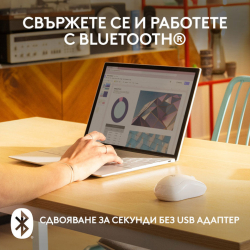 Безжичната мишка Logitech M240 в бял цвят предлага прецизно и плавно управление с оптичен сензор и чувствителност до 4000 dpi, подходяща за работа, училище и ежедневна употреба. С три бутона и скролиращо колело, включително Silent Switch за тихи кликвания, мишката осигурява комфортна и безшумна работа както за дясна, така и за лява ръка. Logitech M240 използва Bluetooth връзка, което позволява лесно свързване с Mac, Windows, Linux, Android и iPad устройства, без необходимост от кабели. Компактният ѝ и ергономичен дизайн я прави удобна за продължителни сесии на работа или учене.