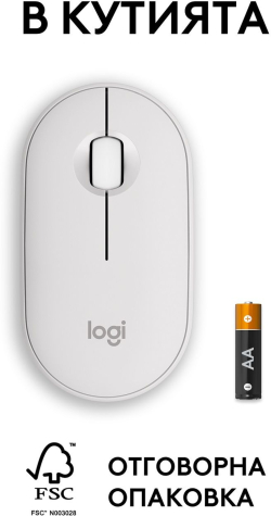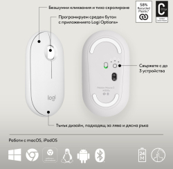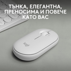 Logitech Pebble 2 M350S, Bluetooth, до 10м обхват, 1000 dpi, 3 бутона, бял цвят