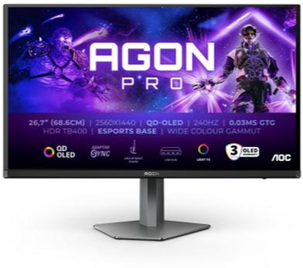 AOC AG276QZD2, 26.7" QD-OLED, 2560x1440@240Hz, 0.03GtG, 1000cd m-2, 1.5M:1