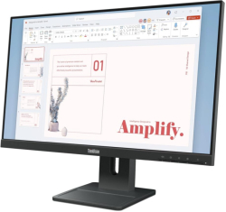Гъвкавата ергономия (височина, завъртане, наклон, pivot) и VESA 100x100 монтажът улесняват подреждането на работното място, а наличието на HDMI, DisplayPort и VGA осигурява лесна свързаност с различни компютри и лаптопи. Вградените стерео високоговорители добавят удобство за онлайн срещи и ежедневна употреба.