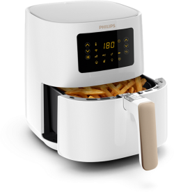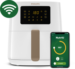 Philips Airfryer Series 5000 Rapid Air 800g-4.1L Connected е практичен фритюрник с горещ въздух, създаден за по-здравословно готвене с по-малко мазнина. Подходящ е за бързо приготвяне на любими ястия у дома с удобен контрол и ясна визуализация.