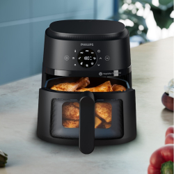 PHILIPS Airfryer серия 2000 - 220 - 4.2 литров тиган, сензорен екран с 9 функции, 240 V, 50 - 60 Hz, Технология Rapid Air; NA220/00 е практичен фритюрник с горещ въздух за по-бързо и удобно приготвяне на разнообразни ястия у дома. С капацитет 4.2 л и прозорец за наблюдение следите процеса на готвене без излишно отваряне.