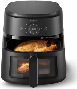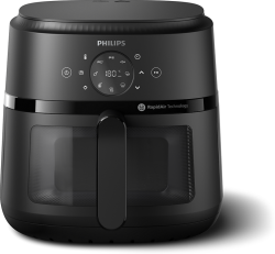 PHILIPS Airfryer, серия 2000 - 6.2 литра вместимост, с технология RapidAir, Лесен за използване сензорен екран с 9 функции е практичен избор за бързо и по-здравословно готвене у дома. С горещ въздух и прецизен цифров контрол приготвяте любими ястия с по-малко мазнина и с отлични резултати.